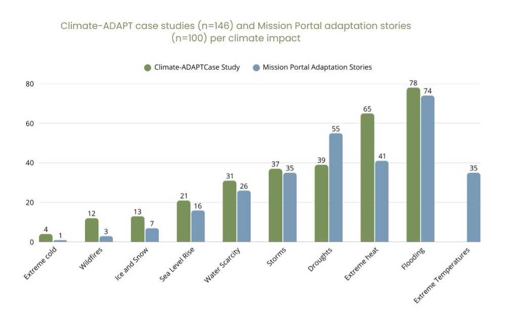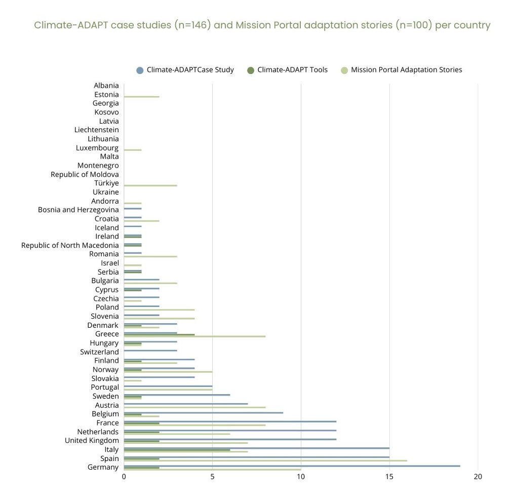Figure 1- Climate-ADAPT countries and Mission Portal adaptation stories per country.